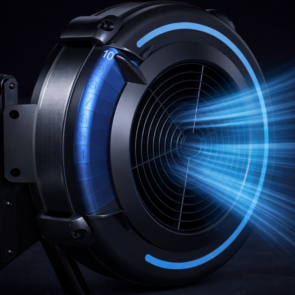 Rameur équipé d’un système de résistance à air, où l’intensité augmente en fonction de la force de tirage. Le moniteur LCD permet de suivre les données d’entraînement telles que le temps, la distance, l’allure (pace), les watts et les calories. L’appareil peut être séparé en deux parties pour permettre le rangement.